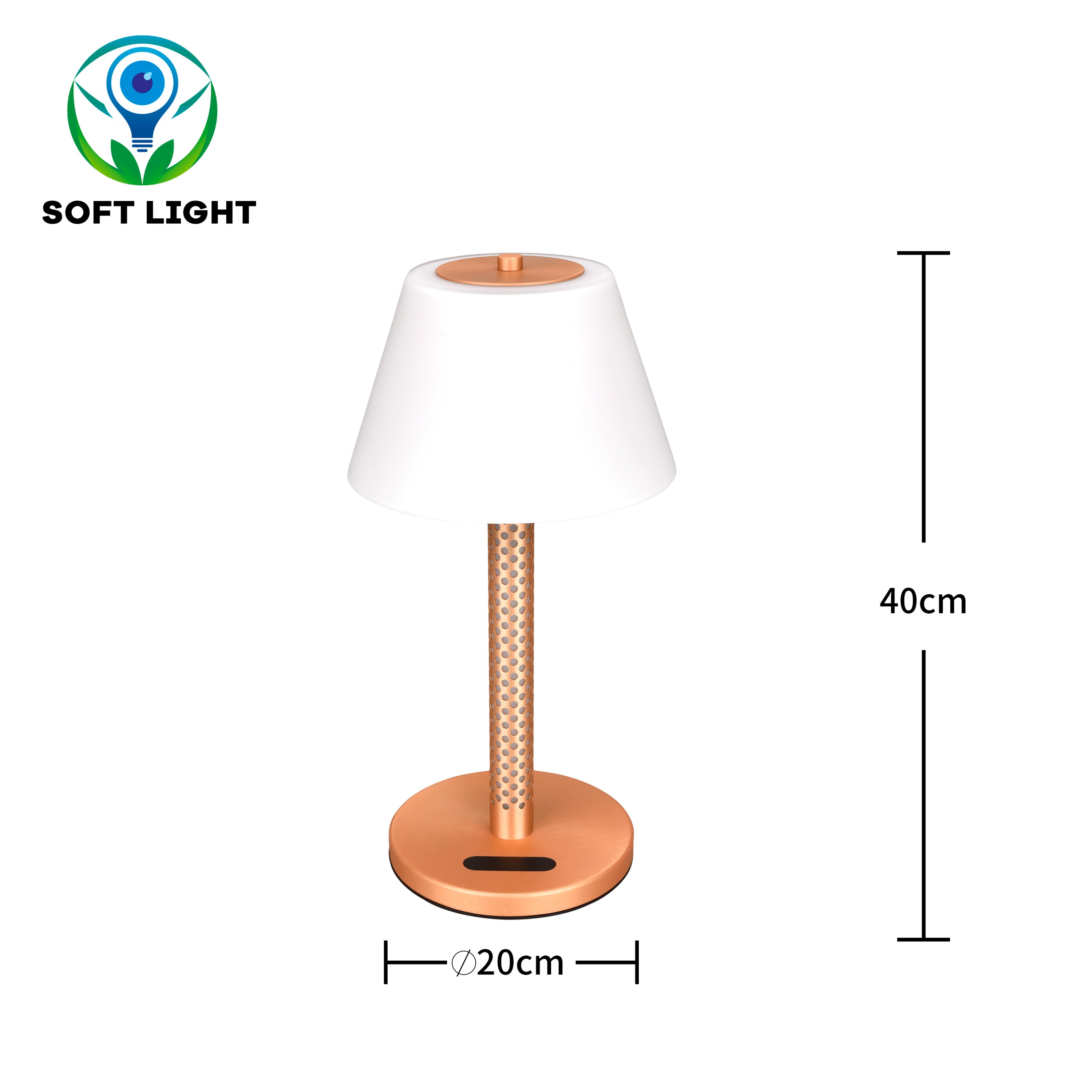 Palm-sized base fits even cramped nightstands